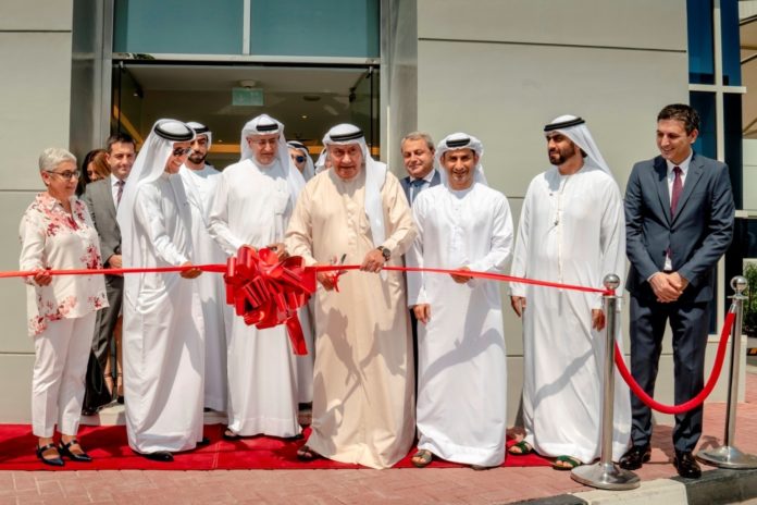Abdallah Ahmed Al Moosa, Chairman, inaugurated with the ribbon-cutting ceremony alongside Abdulaziz Al Serkal, General Manager of Dubai Investments, Omar Al Mesmar, General Manager of Dubai Investments Park (DIP) and Mohammad Saeed Al Raqabani General Manager of Dubai Investments Park – Commercial department.