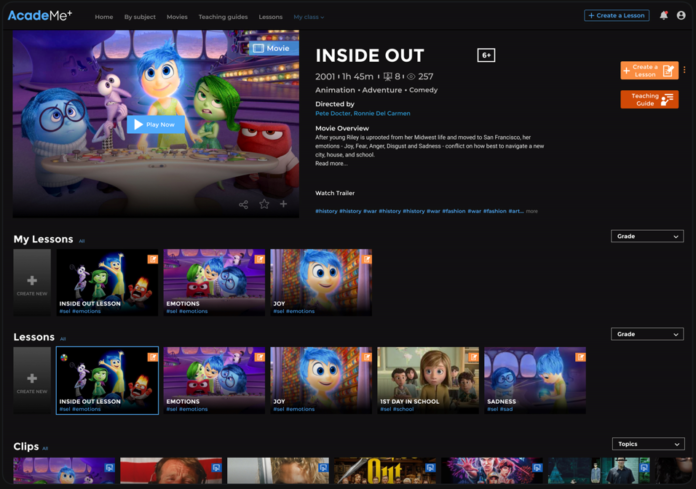 AcadeMe+, The Visual Learning Platform, offers film-based lessons from more than 1,000 of Hollywood’s most loved and carefully curated films for K-12 schools and higher education. Serving to enhance student engagement, AcadeMe+ caters to all teachers’ needs to deliver film-based lessons, and is now launching its international, curriculum and language customizable, version to benefit teachers and students around the globe.