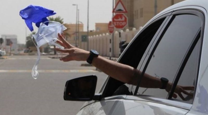 It is a violation of traffic laws if someone throws used face masks and gloves out of their vehicle windows and there will be a fine of Dh1,000/- and six traffic points because these used masks and gloves are a threat to public health and the environment.