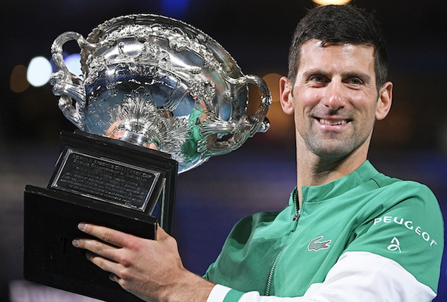 In winning a third straight Australian Open for the second time, the Serb claimed his 18th Grand Slam title to move within two of Roger Federer and Rafael Nadal who have 20 each, while denying Medvedev his first.