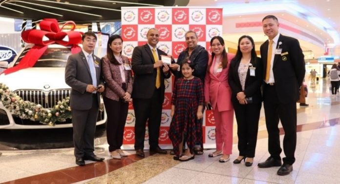 The Indian family was presented with a gift cards worth $2,000 by Dubai Duty Free officials including operations manager Shafique Ansari, duty managers Sanjay Lama, Melanie Tacuban, Hazel Punongbayan and Norie Ann Jose, and duty officer Edwin Papa.