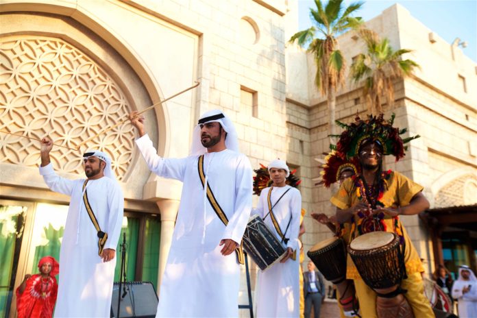 The two-hour event included musical performances entitled “The Language of Music”, which fused music with folklore. A number of talented musicians took part, including Hamdan Al-Abri (UAE), Victor Sitali (Zambia) and Kakembo Shariff (Rwanda).The programme included live food stations serving up traditional Emirati dishes prepared by the highly creative chef Faisal Naser (UAE). Meanwhile, Nigerian chef Gbubemi Fregene revealed the secrets of African folk cuisine.