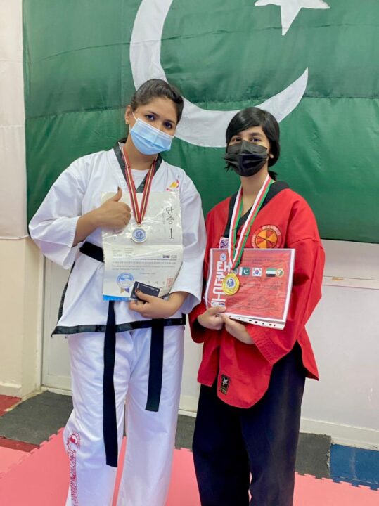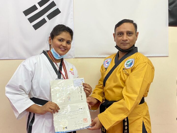 Barkha Ramesh Kolhi from Sindh Pakistan received her KUKKIWON CERTIFICATIONS under the umbrella of Pakistan Social Centre Sharjah, UAE. She is an International Silver Medalist from Ecuador and qualified Taekwondo coach from Arab Taekwondo Union.