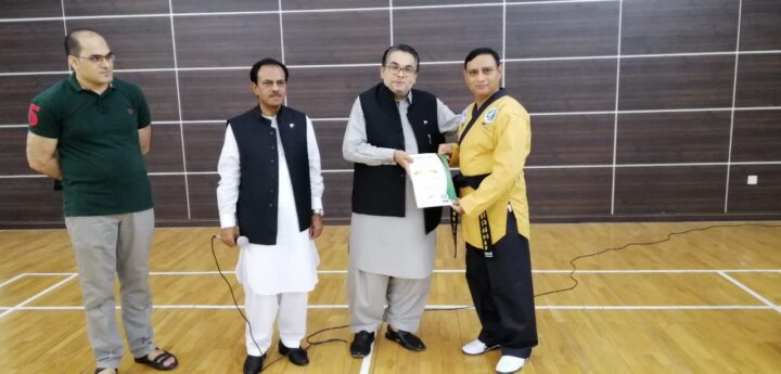 Addressing the officials and students, President Khalid Hussain Choudary said, “Pakistan Social Centre Sharjah always does its best efforts for Pakistani community and other countries’ people to help them in different fields as well as sports activities for their healthy futures. Mr. Choudary also congratulated and appreciated Pakistan Taekwondo Federation’s President, Mr. Lt. Colonel Raja Wasim Ahmed (R) for organising, ‘COAS Pakistan Open Taekwondo Championship 2021 International G1 which is for the first time ever in Pakistan.”