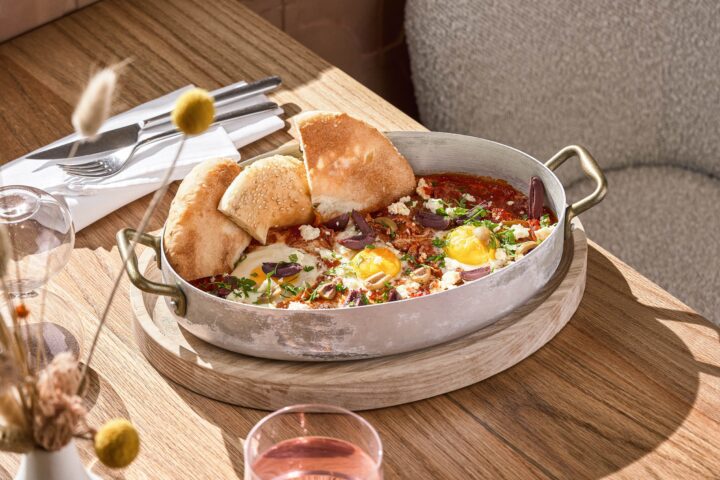 Lavash harovaz with cheese and estragon, chicken satsivi, grilled open seabass with avocado, pasta variety and pide with cheese and zaatar. Their new desserts are Napoleon cake, Chocolate biscuit bites with ice cream, and pistachio crumble.