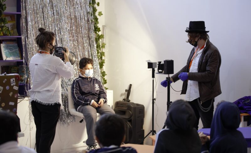The team from Comme il Faut gave the participants a demonstration of taking a picture with a camera on a tripod and developing the film in a dark box which let in only red light. The children were able to observe first-hand the entire process involved in producing a photograph in the pre-digital era.