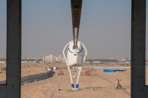 SkyWayGreenTech has already started the construction at the site to build three SkyWay hanging test tracks that will be able to carry cargo and passengers to and from the beginning of the Park (Sharjah Airport road) to the end of the park (Mweileh Road) in what would be a live embodiment of the strategic partnership between investment and academic sectors.