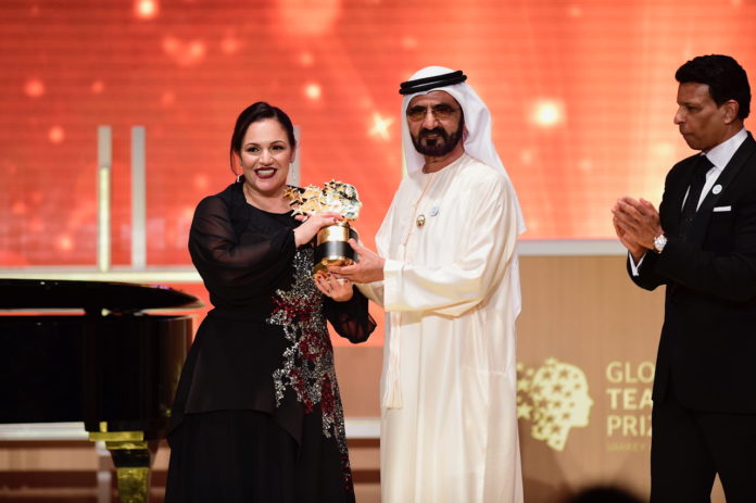Dubai – Andria Zafirakou, an art and textiles teacher from Alperton Community School, Brent, London, has been named as the winner of the Varkey Foundation Global Teacher Prize 2018, awarded under the patronage of His Highness Sheikh Mohammed bin Rashid Al Maktoum, the Vice President and Prime Minister of the United Arab Emirates and Ruler of Dubai.